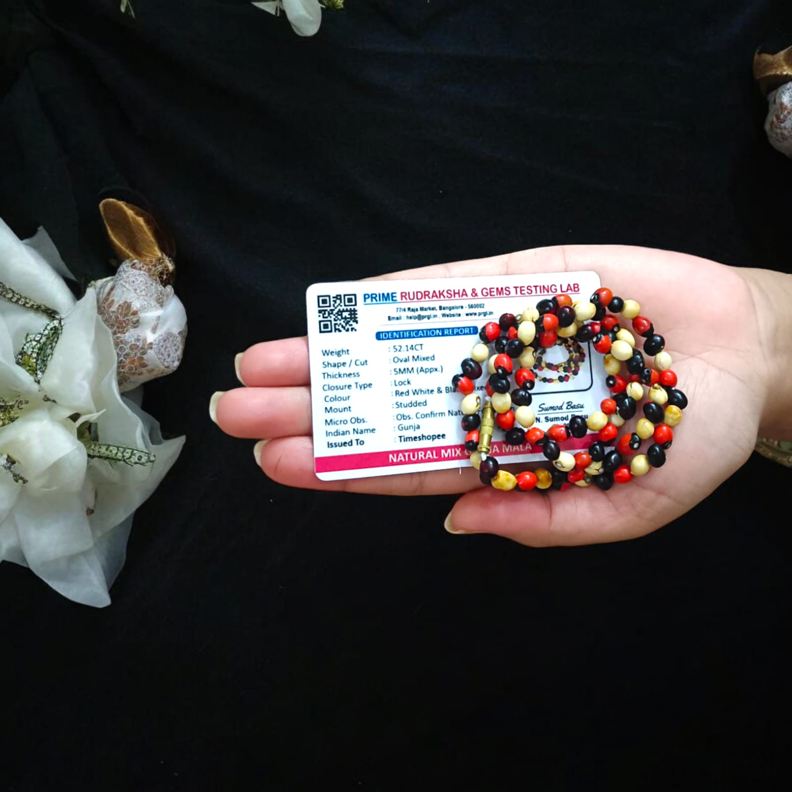 Gunja Mala | Red, White & Black Mix Gunja Mala | Lab Certified | Timeshopee
